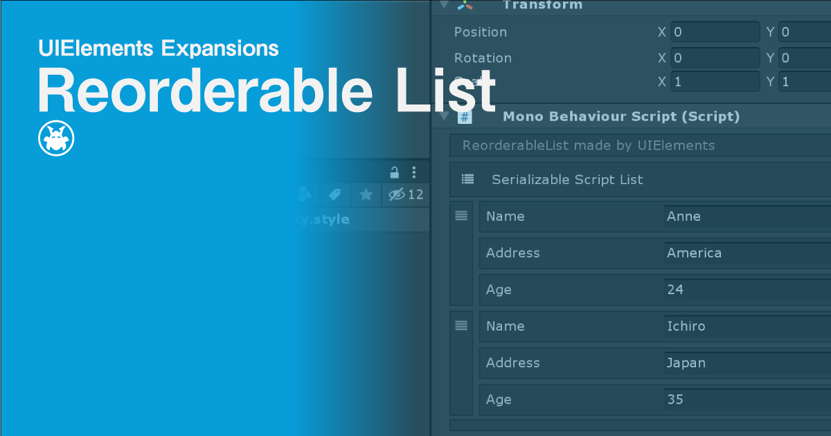 "UIElements Expansions: Reorderable List" strongly supports "UIElements" which was introduced with Unity 2019.1. In particular, it makes it easier to write inspector designs that previously required editor scripts.